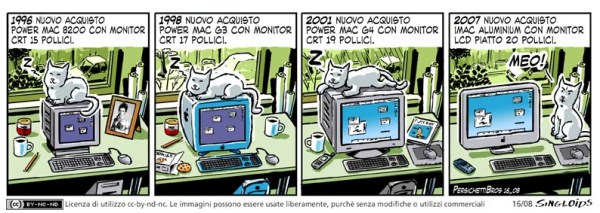 1996 Nuovo acquisto, Power Mac 8200 con monito crt 15 pollici. – 1998 Nuovo acquisto, Power Mac G3 con monitor crt 17 pollici. – 2001 Nuovo acquisto, Power Mac G4 con monitor crt 19 pollici. – 2007 Nuovo acquisto, iMac Aluminium con monitor lcd piatto 20 pollici.