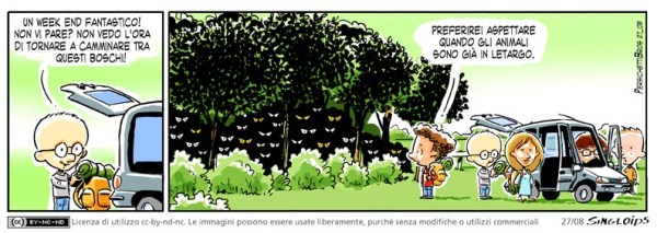 Sid: Un weekend fantastico! Non vi pare? Non vedo l’ora di tornare a camminare tra questi boschi! – Bob: Preferirei aspettare quando gli animali sono già in letargo.