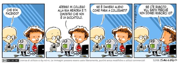 Sid: Cosa stai facendo? – Bob: Adesso mi collego alla sua memoria e ti dimostro cne non è un giocattolo. – Sid: Se è davvero alieno come farai a collegarti? – Bob: Se c’è riuscito Will Smith perché non dovrei riuscirci io?