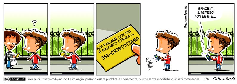 Volantino: Vuoi parlare con dio e salvarti? chiama il 555-CRISTOTIAMA – Signorina: Spiacenti il numero non esiste.