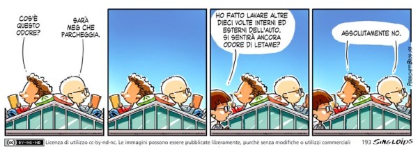 Bob: Cos’è questo odore? – Sid: Sarà Meg che parcheggia. – Meg: Ho fatto lavare altre 10 volte interni ed esterni dell’auto. Si sentirà ancora odore di letame? – Sid e Bob: Assolutamente no.