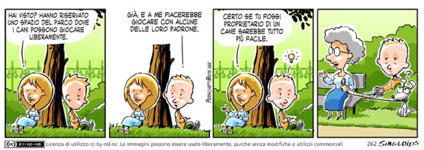 Gea: Hai visto? Hanno riservato uno spazio del parco dove i cani possono giocare liberamente. – Ted: Già, e a me piacerebbe giocare con alcune delle loro padrone. – Gea: Certo se tu fossi proprietario di un cane sarebbe tutto più facile.