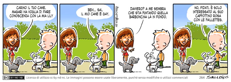 Ragazza: Carino il tuo cane. Magari ha voglia di fare conoscenza con la mia Lily. – Ted: Beh… sai, il mio cane è gay. – Ragazza: Davvero? A me sembra che stia puntando quella barboncina la in fondo. – Ted: No, fidati. E’ solo interessato al suo cappottino rosa con le paillettes.