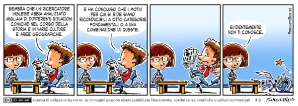 corso della storia e in varie culture e aree geografiche. – Bob: E ha concluso che i motivi per cui si ride siano riconducibili a otto categorie fondamentali o a una combinazione di queste. – Meg: Evidentemente non ti conosce.