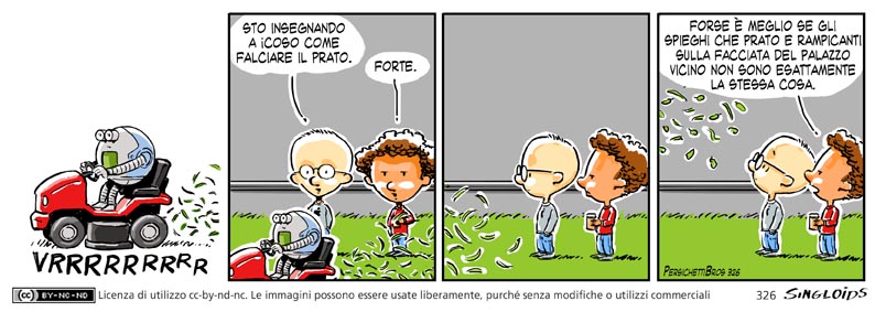 Sid: Sto insegnando a icoso come falciare il prato – Bob: Forte. – Bob: Forse è meglio se gli spieghi che prato e rampicanti sulla facciata del palazzo vicino non sono esattamente la stessa cosa.