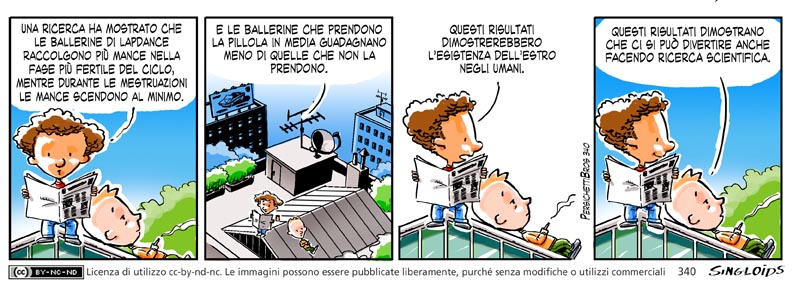 Bob: Una ricerca ha mostrato che le ballerine di lapdance raccolgono più mance nella fase più fertile del ciclo, mentre durante le mestruazioni le mance scendono al minimo. – Bob: E le ballerine che prendono la pillola in media guadagnano meno di quelle che non la prendono. – Bob: Questi risultati dimostrerebbero l’esistenza dell’estro negli umani. – Ted: Questi risultati dimostrano che ci si può divertire anche facendo ricerca scientifica.