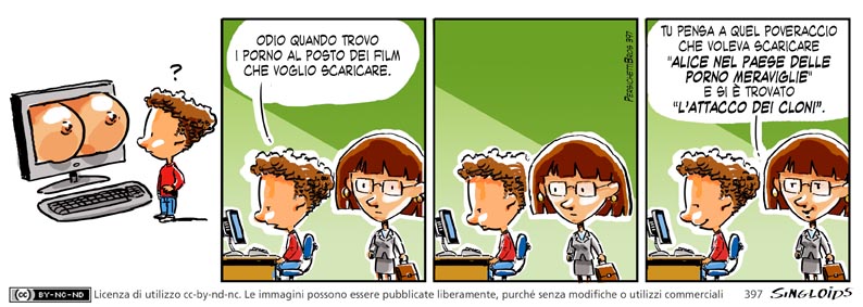 Bob: Odio quando trovo i porno al posto dei film che voglio scaricare. – Meg: Tu pensa a quel poveraccio che voleva scaricare “Alice nel paese delle porno meraviglie” e si è trovato l’attacco dei cloni.