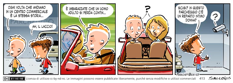 Ted: Ogni volta che andiamo in un centro commerciale è la stessa storia… – Bob: Ah, il laccio! – Ted: E’ imbarazzate che un uomo adulto si perda contin… – Bob: Scusi? In questo parcheggio C’è un reparto intimo donna?