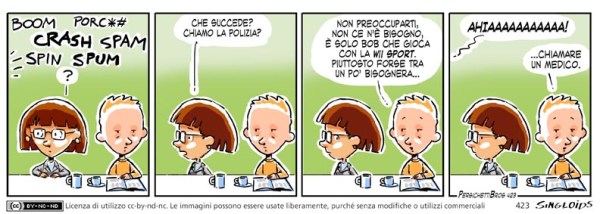 Meg: Che succede? Chiamo la polizia? – Ted: Non preoccuparti, non ce n’è bisogno, è solo Bob che gioca con la Wii sport. Piuttosto forse tra un po’ bisognerà… – Bob: AHIAAAAAAAAAAA! – Ted: …chiamare un medico.