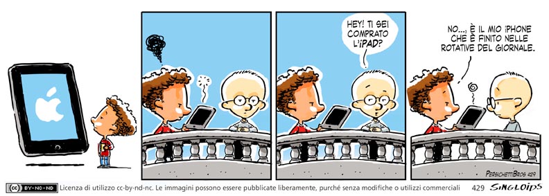 Sid: Hey! Ti sei comprato l’iPad? – Bob: No…, è il mio iCool che è finito nelle rotative del giornale.