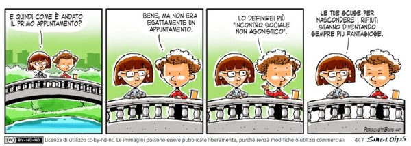 Meg: E quindi come è andato il primo appuntamento? – Bob: Bene, ma non era esattamente un appuntamento. – Bob: Lo definirei più “incontro sociale non agonistico”. – Meg: Le tue scuse per nascondere i rifiuti stanno diventando sempre più fantasiose.