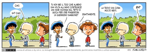 Sid: Ciao. – Ragazza: Ciao. – Ragazza: Tu non sei il tizio che almeno una volta all’anno costruisce una nave vichinga sul tetto e gioca per ore fingendosi un guerriero sassone? – Sid sorridente: Esattamente. – Ragazza: La trovo una cosa molto sexy. – Bob: Eh?