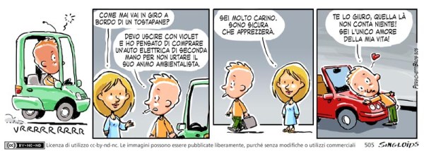 Gea: Come mai vai in giro a bordo di un tostapane? – Ted: Devo uscire con Violet e ho pensato di comprare un’auto elettrica di seconda mano per non urtare il suo animo ambientalista. – Gea: Sei molto carino. Sono sicura che apprezzerà. – Ted: Te lo giuro, quella la non conta niente! Sei l’unico amore della mia vita!