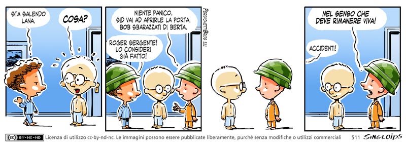 Bob: Sta salendo Lana. – Sid: COSAA?? – Ted: Niente panico. Sid vai ad aprirle la porta. Bob sbarazzati di Berta. – Bob: Ricevuto sergente! Lo consideri già fatto! – Ted: Nel senso che deve rimanere viva! – Bob: Accidenti!