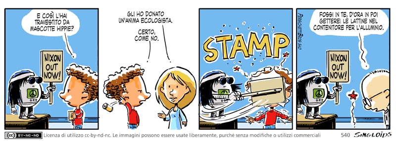 Bob: E così l’hai travestito da mascotte hippie? – Gea: Gli ho donato un’anima ecologista. – Bob: Certo, come no. – Sid: Fossi in te, d’ora in poi getterei le lattine nel contenitore per l’alluminio.