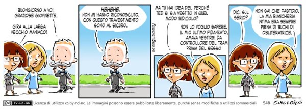 Ted: Buongiorno a voi, graziose giovinette – Meg: Gira alla larga vecchio maniaco! – Ted: Hehehe non mi hanno riconosciuto. Con questo travestimento sono al sicuro. – Meg: Ma tu hai idea del perché Ted si sia vestito in quel modo ridicolo? – Gea: Non lo voglio sapere. Il mio ultimo fidanzato, amava vestirsi da controllore del tram prima del sesso. – Meg: Dici sul serio? – Gea: Non sai che fastidio. La mia biancheria intima era sempre piena di buchi di obliteratrice.