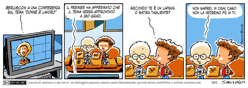 Speaker: Berlusconi a una conferenza sul tema “donne e lavoro”. Il premier ha affermato che il tema verrà affrontato a 180 gradi. – Bob: Secondo te è un lapsus o satira tagliente?