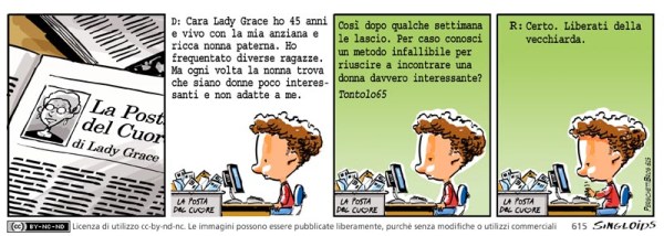 Ho conosciuto diverse ragazze. Ma ogni volta la nonna trova che siano donne poco interessanti e non adatte a me. Così dopo qualche settimana le lascio. Per caso conosci un metodo infallibile per riuscire a incontrare una donna davvero interessante? Tontolo65 – R: Certo. Liberati della vecchiarda.