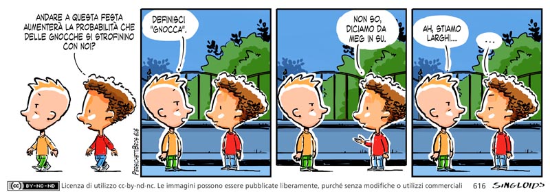Bob: Andare a questa festa aumenterà la probabilità che delle gnocche si strofinino con noi? – Ted: Definisci “gnocca”. – Bob: Non so, da Meg in su diciamo. – Ted: Ah, stiamo larghi…