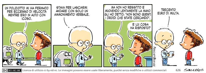 Ma non ho resistito e muovendo lentamente la mano gli ho detto: “Non sono questi i droidi che state cercando”. – Bob: E lui cosa ha risposto? – Sid: Trecento euro di multa