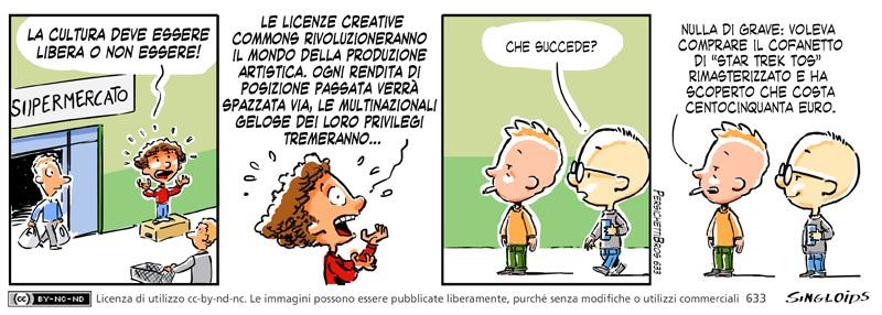rivoluzioneranno il mondo della produzione artistica. Ogni rendita di posizione passata verrà spazzata via, le multinazionali gelose dei loro privilegi tremeranno… – Sid: Che succede? – Ted: Nulla di grave: voleva comprare il cofanetto di Star Trek TOS rimasterizzato e ha