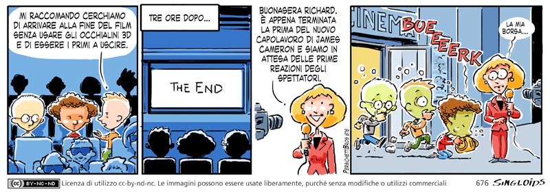 Ted: Mi raccomando cerchiamo di arrivare alla fine del film senza usare gli occhialini 3D e di essere i primi a uscire. – Bella intervistatrice: Buonasera Richard. E’ appena terminata la prima del nuovo capolavoro di James Cameron e siamo in attesa delle prime reazioni degli spettatori.