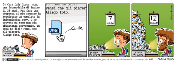 D: Cara Lady Grace, sono una fotomodella di intimo di 24 anni. Per fare una sorpresa al mio ragazzo ho acquistato un completino da infermierina sexy. L’ho provato ma temo non sia abbastanza sexy. Tu cosa ne dici? Pensi che gli piacerò? Allego foto.