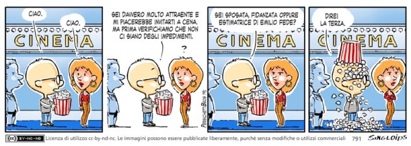Sid: Ciao. – Ragazza: Ciao. – Sid: Sei davvero molto attraente e mi piacerebbe invitarti a cena, ma prima verifichiamo che non ci siano degli impedimenti. – Sid: Sei sposata, fidanzata oppure estimatrice di Emilio Fede? – Sid: Direi la terza.