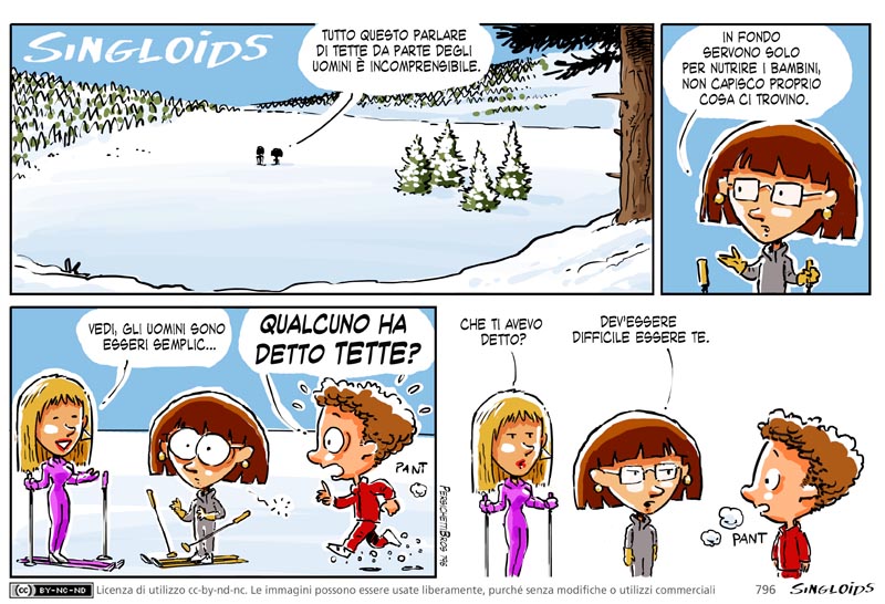 Meg: Tutto questo parlare di tette da parte degli uomini è incomprensibile. In fondo servono solo per nutrire i bambini, non capisco proprio cosa ci trovano. – Pam: Vedi, gli uomini sono esseri semplici… – Bob: QUALCUNO HA DETTO TETTE? – Pam: Che ti avevo detto? – Meg: Deve essere difficile essere te.