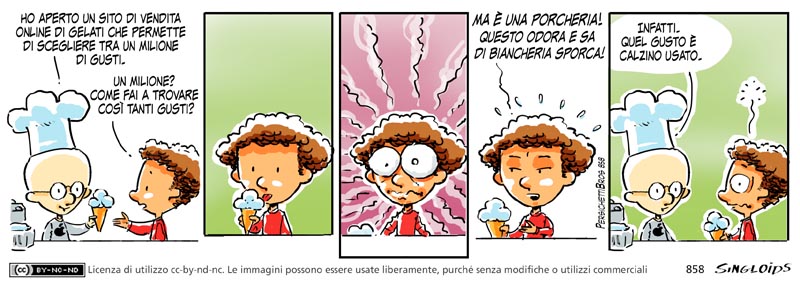Sid: Ho aperto un sito di vendita online di gelati che permette di scegliere tra un milione di gusti. – Bob: Un milione? Come fai a trovare così tanti gusti? – Bob: Ma è disgustoso! Questo odora e sa di biancheria sporca. – Sid: Infatti. Quello è gusto calzino usato.