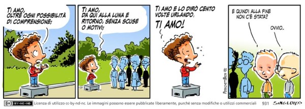 Bob: Ti amo, oltre ogni possibilità di comprensione; ti amo, da qui alla luna e ritorno, senza scuse o motivi; ti amo e lo dirò cento volte urlando, TI AMO. – Ted:: E quindi alla fine non c’è stata? – Sid: Ovvio.
