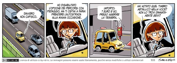 Meg: Davvero non capisco. Ho disabilitato l’opzione delle strade a pagamento, ma ti ostini a farmi prendere l’autostrada alla minima occasione. – Voce del casello: Importo: 7 euro e 50. Prego inserire la tessera. – GPS: Hai notato quel timbro metallico nella voce? Non lo trovi dannatamente sexy?