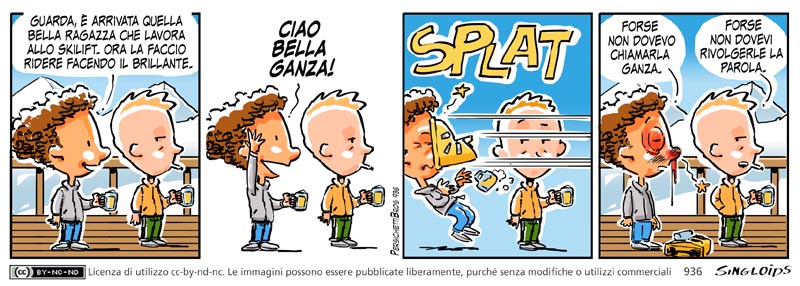 Bob: Guarda è arrivata quella bella ragazza che lavora allo skilift. Ora la faccio ridere facendo il brillante. – Bob: Ciao bella ganza! – Bob: Forse non dovevo chiamarla ganza. – Ted: Forse non dovevi parlarle.