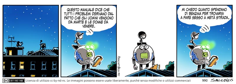 iCoso: Il manuale dice che tutti i problemi derivano dal fatto che gli uomini vengono da Marte e le donne da Venere. – iCoso: Mi chiedo quanto spendano di benzina per trovarsi a fare sesso a metà strada.