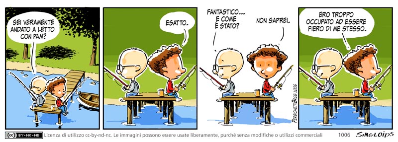 Sid: Hai davvero fatto sesso con pam? – Bob: Esatto. – Sid: Fantastico… e come è stato? – Bob: Non saprei. Ero troppo occupato ad essere fiero di me stesso.