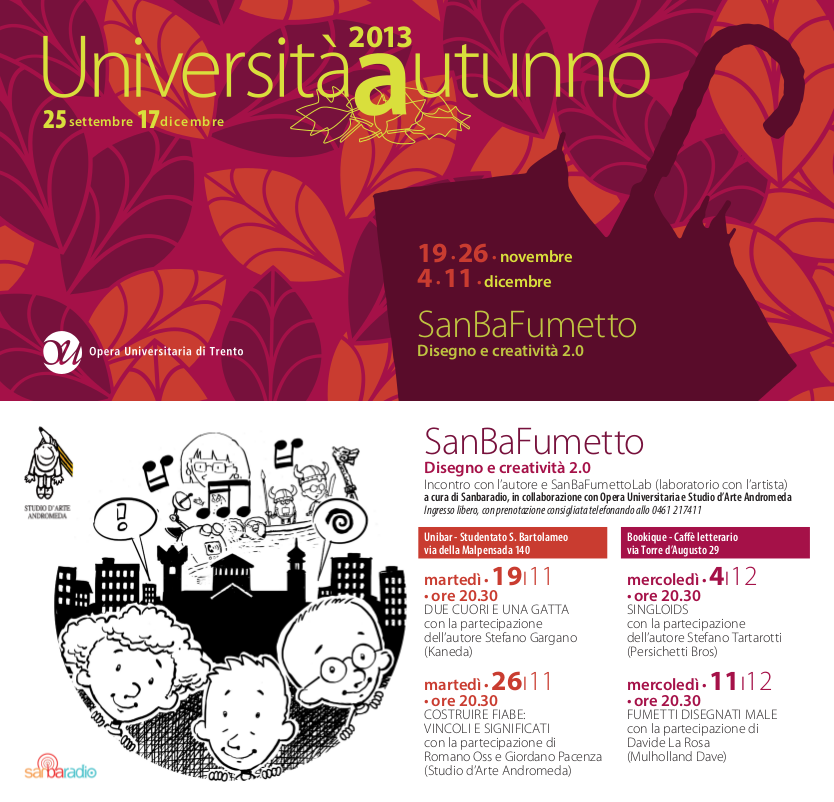 Mercoledì 4 dicembre alle 20,30 parteciperò in rappresentanza del trio persichetti a un incontro organizzato da SanBaFumetto e dedicato a Singloids.