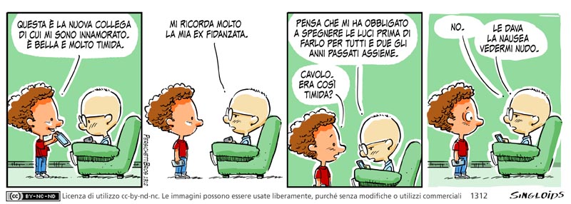 chiamatemi pure grammar-nazi ma devo puntualizzare sul diffuso ed erroneo uso negativo della parola “affatto” a cui questa strip non contribuisce affatto 😉
