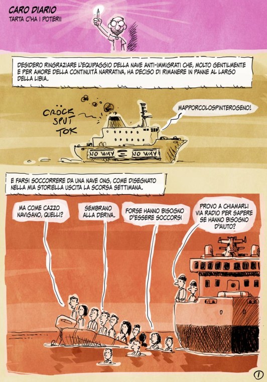 Ho postato una nuova storiella-aggiornamento di sei pagine. Racconta di: estremisti in avaria, premonizioni tartesche, sirene carburatoriste, matite del potere, tartacapellone, Berlusconi cementato, campagna elettorale da marciapiede, citazioni sbagliate, George Martin che fancula, e Renzi canterino.
