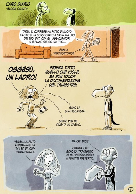 Ho pubblicato sul Post una nuova storiella. Ok, non è poi così nuova. L’ho disegnata l’anno scorso per il volume “U come Umorismo” edito dalla “Slowcomix” per raccogliere fondi per l’Ospedale Pediatrico Meyer. Ma possiamo dire che è più o meno inedita su Web. Per leggerla nella sua sciocca completezza cliccate l’immagine.