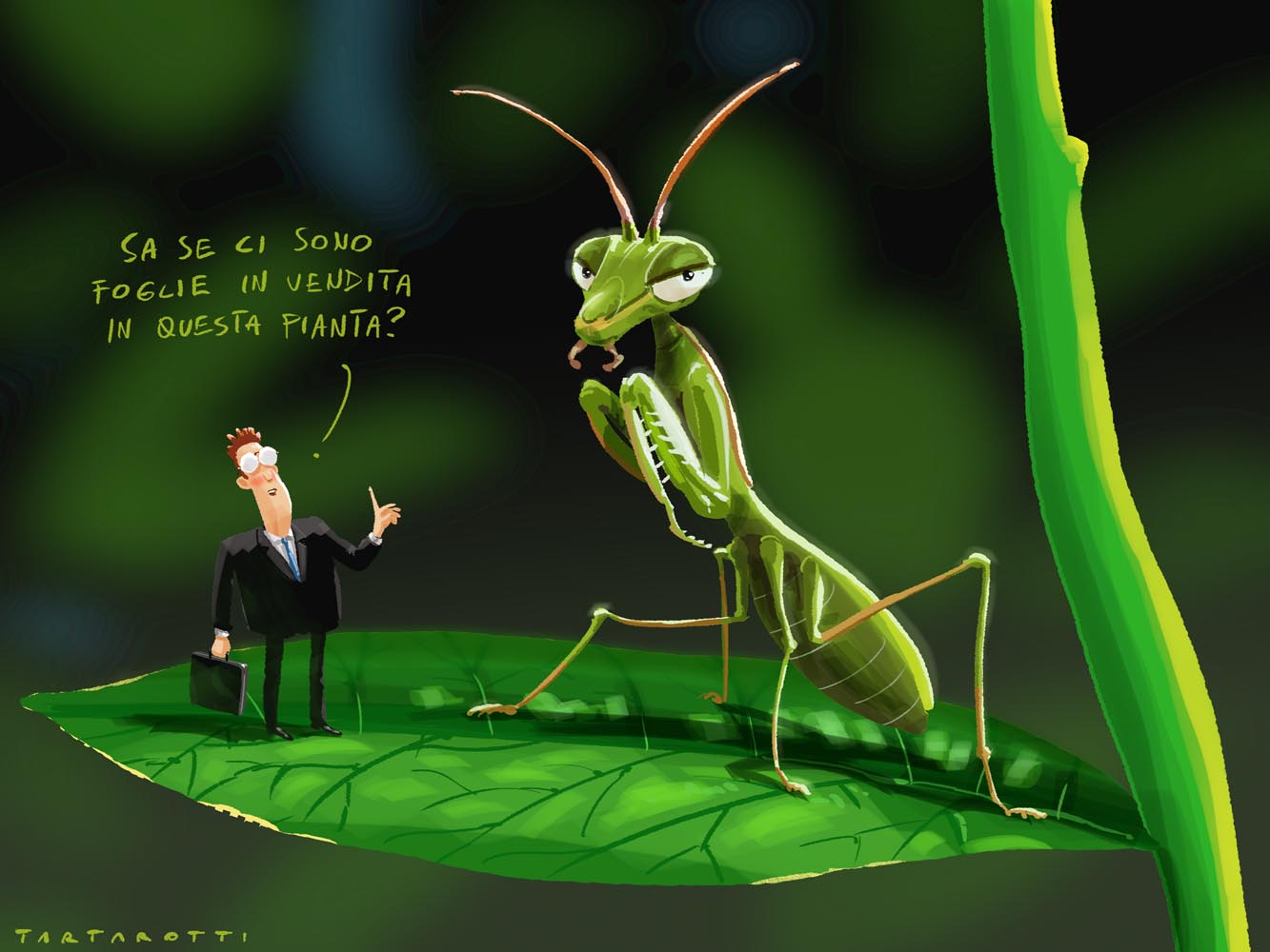 Quello che mi sono sempre chiesto è “Anche nel mondo degli insetti ci sono gli agenti immobiliari che continuano a telefonarti e suonarti il campanello? Se sì, le mantidi possono staccar loro le braccia e divorarli?”