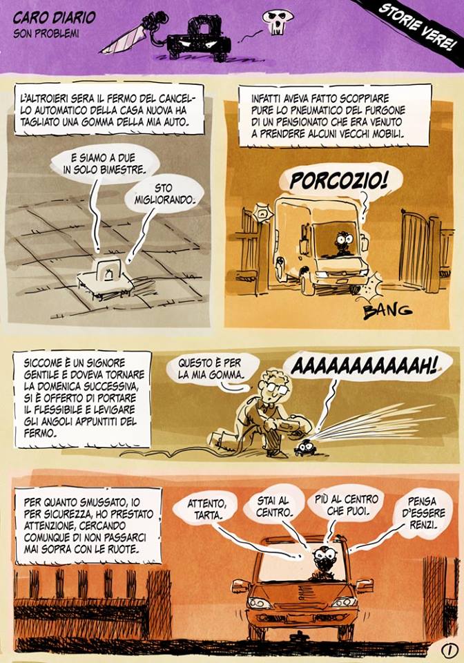 Ma vi ricordate l’anno scorso quando il maledetto fermo del cancello ha abusato della mia povera utilitaria? Lei se lo ricorda (l’utilitaria)