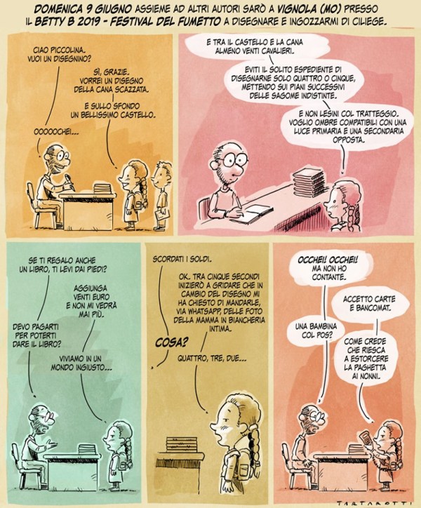 Ammesso che io sopravviva alla mia torta scaduta, domenica 9 Giugno sarò al BETTY B Festival del Fumetto di Vignola (MO) a disegnare e diffondere pericolose ricette dolciarie. Se andrò in auto, porterò con me anche la cana e, prima del ritorno a Piozzano, riempirò il veicolo di ciliege di Vignola.