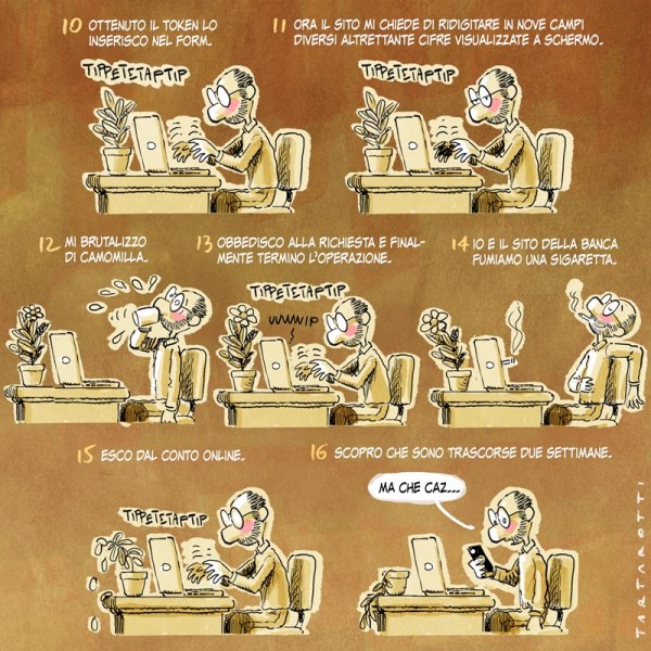 Qualche giorno fa ho effettuato un paio di bonifici online. A metà procedura volevo già morire. Alla fine ero tentato d’andare alla sede centrale della mia banca con un camion pieno di cimici.