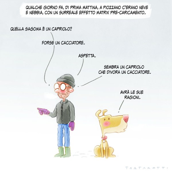 Ieri ero in giro per boschi con la cana e, per via della nebbiolina e della neve che cadeva, c’era un bizzarro effetto whitescreen.