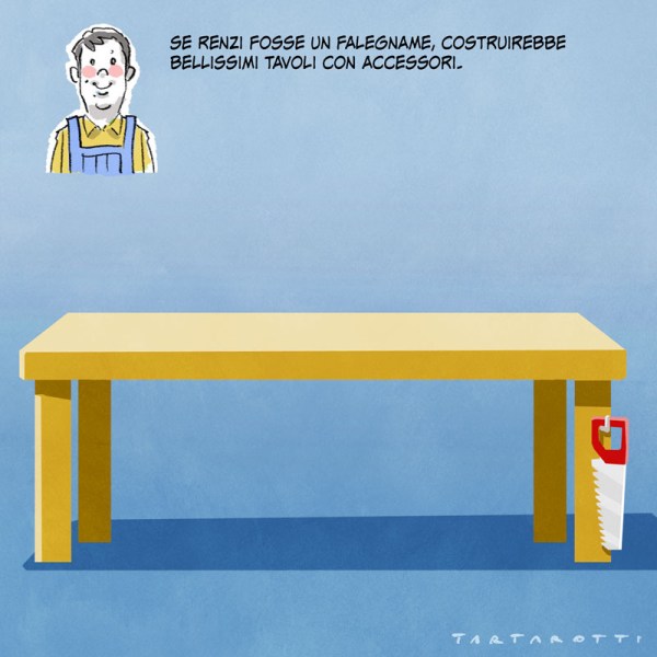 Trovo ingiuste le accuse che periodicamente vengono mosse a Renzi, accusandolo di “Organizzare le partite di calcetto e poi, a inizio secondo tempo, bucare il pallone.”Anzi. Penso che siamo fortunati che Matteo abbia scelto la carriera politica. È un uomo straordinario e avrebbe fatto grandi cose, qualsiasi professione avesse scelto.