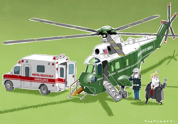 L’altro ieri è stato l’ultimo giorno della presidenza Trump. Ho visto le foto dell’ex presidente mentre saliva per l’ultima volta sull’elicottero presidenziale salutando la stampa e mi è venuta in mente questa scena.