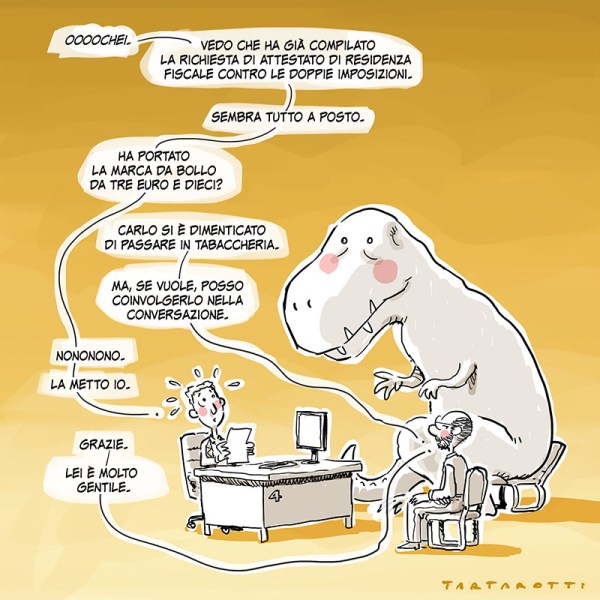 Mi hanno dato appuntamento per i primi di dicembre. Mancano ancora due settimane e sono già agitato. Ho deciso che porterò Carlo, il tirannosauro, come animale domestico di supporto psicologico.