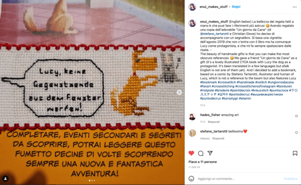Un tag su instagram mi ha fatto scoprire questa meraviglia (la prima immagine). Una persona ha realizzato un fantastico segnalibro a punto croce da accompagnare con la copia di “Un giorno da Cana” regalata a qualcuno.