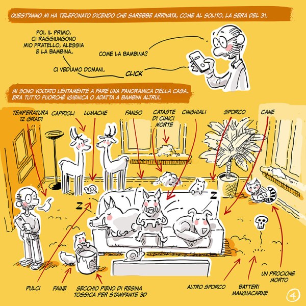 Lei ha subito morso anche l’altra caviglia, così ho fatto questo disegnino natalizio e poi sono corso a fasciare le caviglie.